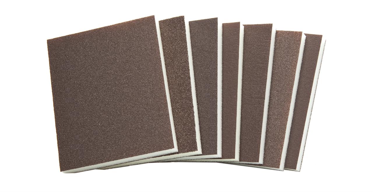Abm. 98x120x12mm - PU Schaum weich - 2seitig Siliciumcarbid - VPE: 50 Stück - 10 Stück Korn 060 = P 150 medium - 10 Stück Korn 080 = P 180 medium+- 10 Stück Korn 100 = P 220 fein - 10 Stück Korn 150 = P 280 fein++- 10 Stück Korn 220 = P 500 superfein